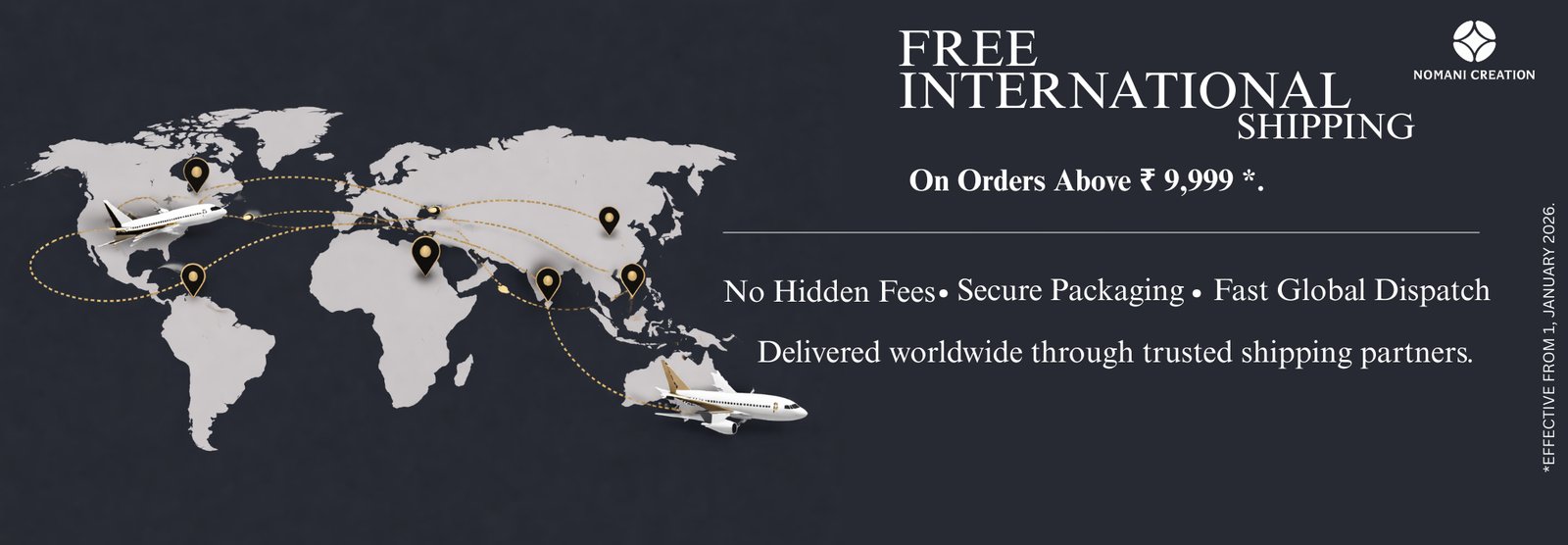 NOMANI CREATION ships products internationally to multiple countries and provides free international shipping on eligible orders, ensuring reliable delivery and dedicated support for our customers.
